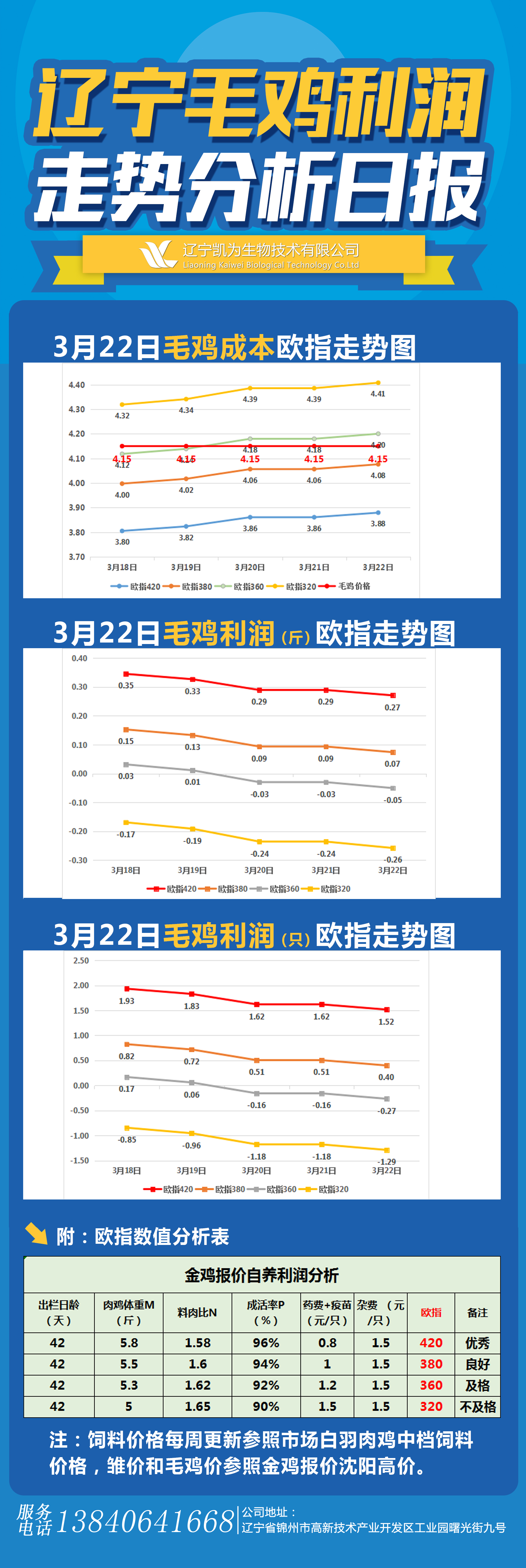 3月22日遼寧地區毛雞利潤走勢分析圖