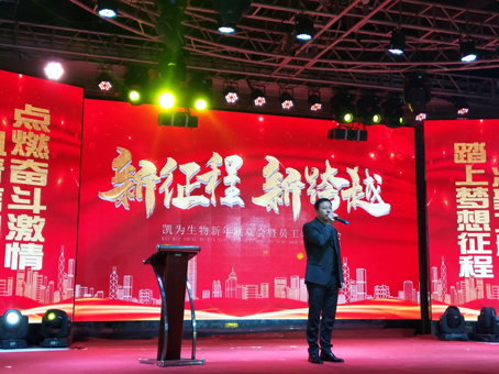 公司總裁王鐵良先生首先總結(jié)公司十余年的奮斗歷程,“從冰雪到綠原,那是冬天走向春天的路,從失敗到成功,那是披襟斬棘闖出來的路,凱為人十余載風(fēng)雨同舟,不負(fù)韶華。過去的一年是我們公司創(chuàng)新業(yè)績、重振區(qū)域品牌的一年,2019年公司不僅實(shí)現(xiàn)了銷售收入同比增長,而且公司新增養(yǎng)殖基地三個(gè),新建培訓(xùn)中心已納入養(yǎng)殖服務(wù)板塊,新建檢測(cè)中心納入客戶服務(wù)體系。實(shí)踐證明:我們一直用凱為的價(jià)值觀衡量我們的行動(dòng)向共同美好的愿景持續(xù)奮進(jìn)!正是因?yàn)槟銈兊母冻龊蛿y手奮進(jìn)才有今天的凱為。我代表公司感謝所有員工的努力和敬業(yè),同時(shí)更要感謝你們的家人,正是他們默默的支持和奉獻(xiàn),使你們能全身心的投入工作,在此,我衷心的祝愿你們健康快樂!萬事如意!!”